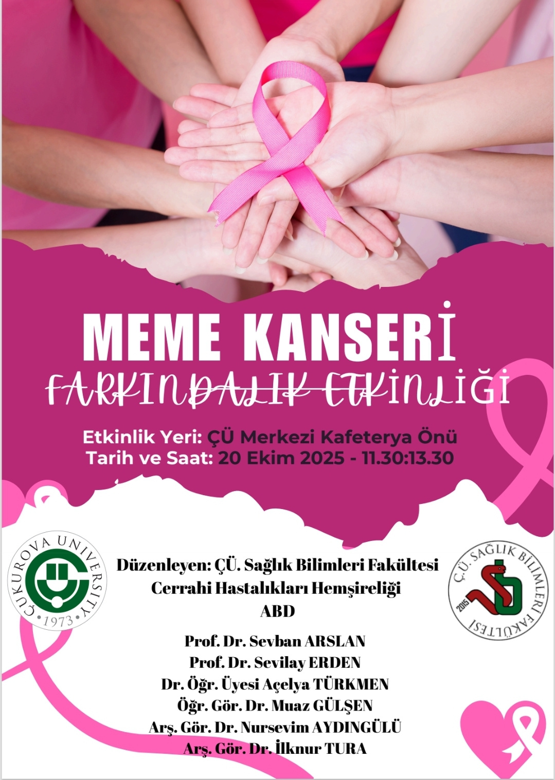 Meme kanseri farkındalık ayına özel farkındalık çalışmaları amacıyla, üniversite kampüsünde bilgilendirme amaçlı stand kurulacaktır. Tarih: 20.10.2025