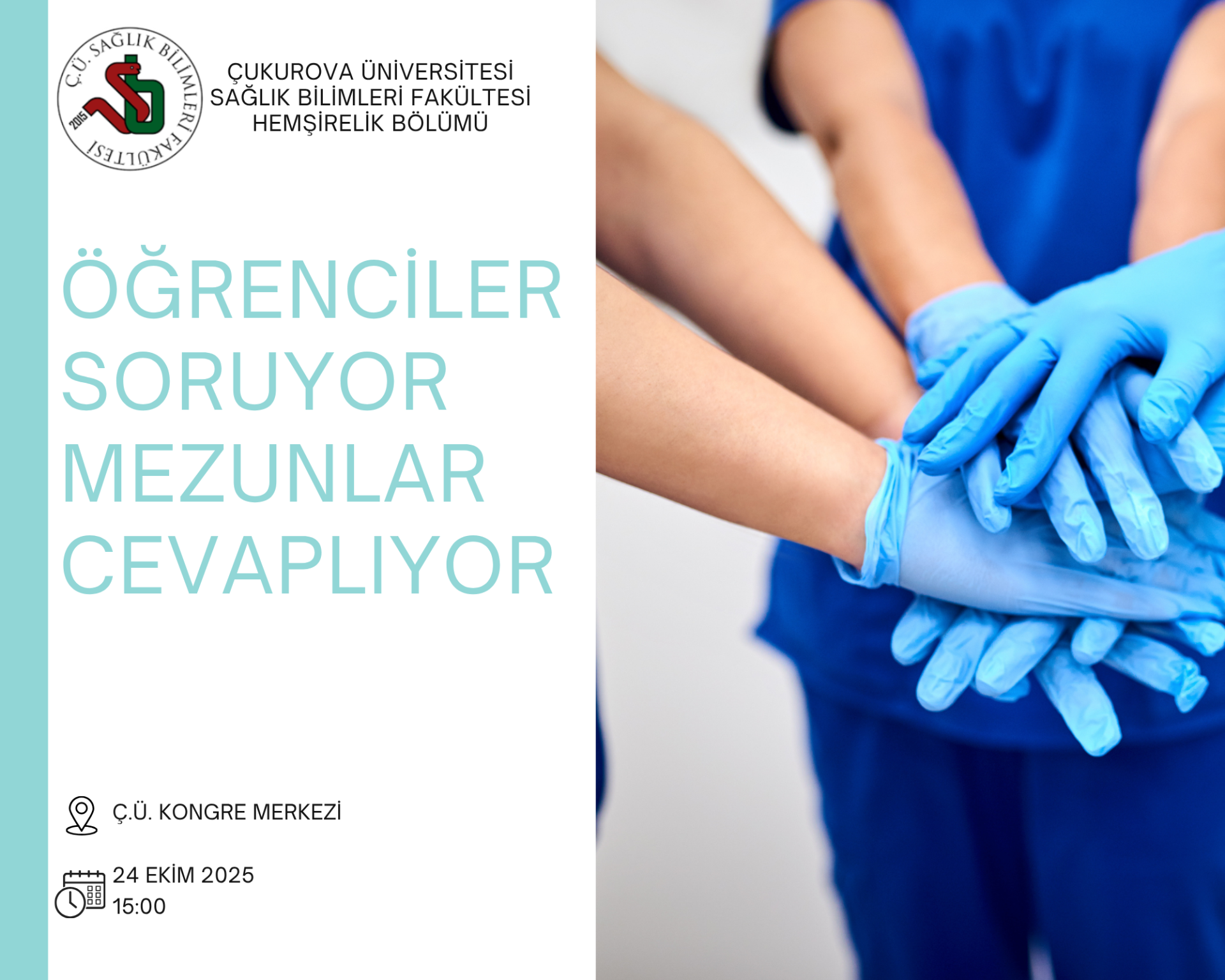 Bölümümüz öğrencilerinin okul ve iş hayatına yönelik sorularını, hemşirelik bölümü mezunlarımızın cevaplayacağı “Öğrenciler Soruyor Mezunlar Cevaplıyor” etkinliği, Mezun İzlem Komisyonu adına Doç.Dr. Serap Torun, Öğr. Gör. Osman Bilgin ve Arş. Gör. Dr. Dilara Keklik önderliğinde 24.10.2025 tarihinde yapılacaktır.