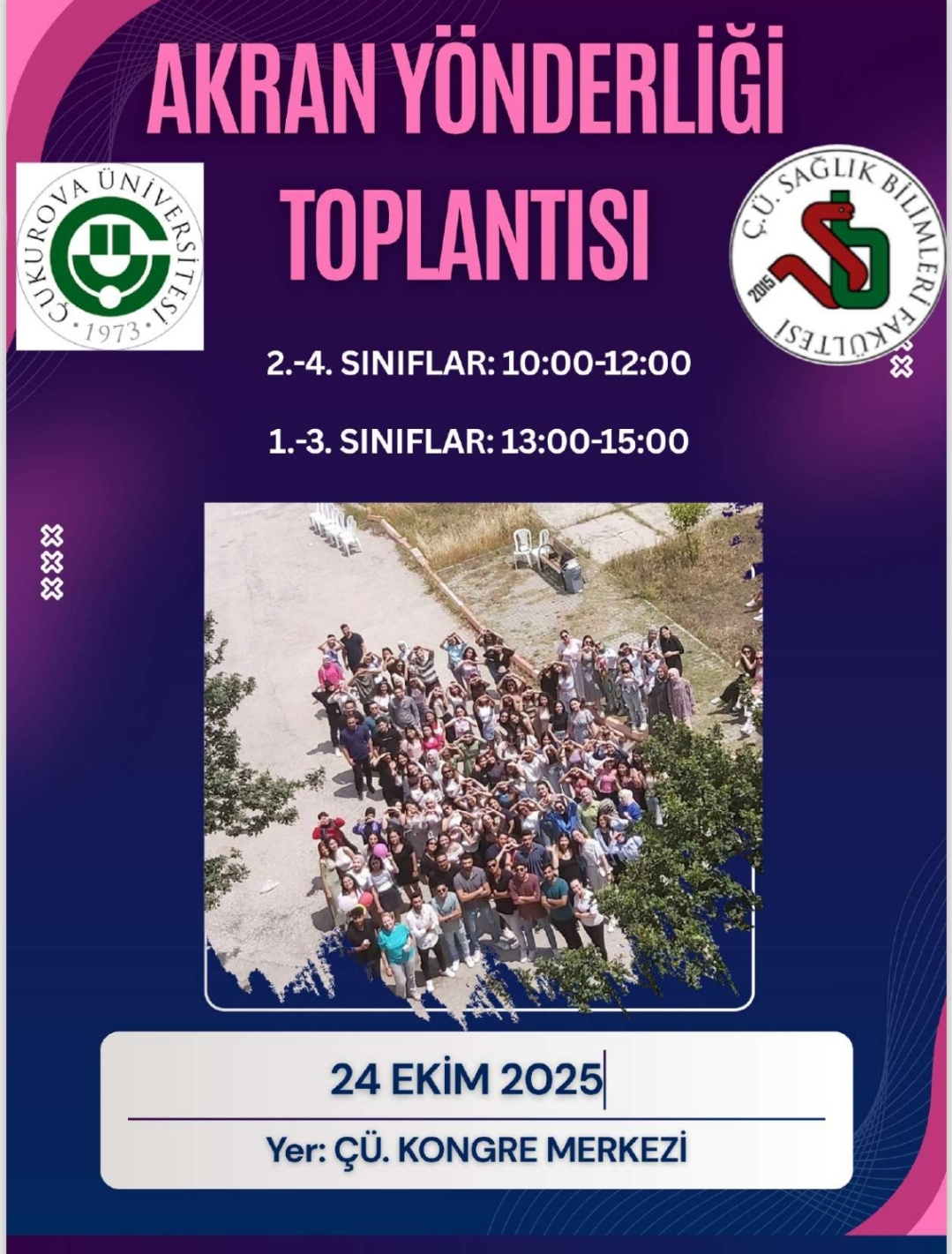 24 Ekim 2025 tarihinde saat 10:00-12:00 arasında 2. ve 4. sınıfların, saat 13:00-15:00 arasında ise 1. ve 3. sınıfların akran yönderliği toplantısı yapılacaktır.